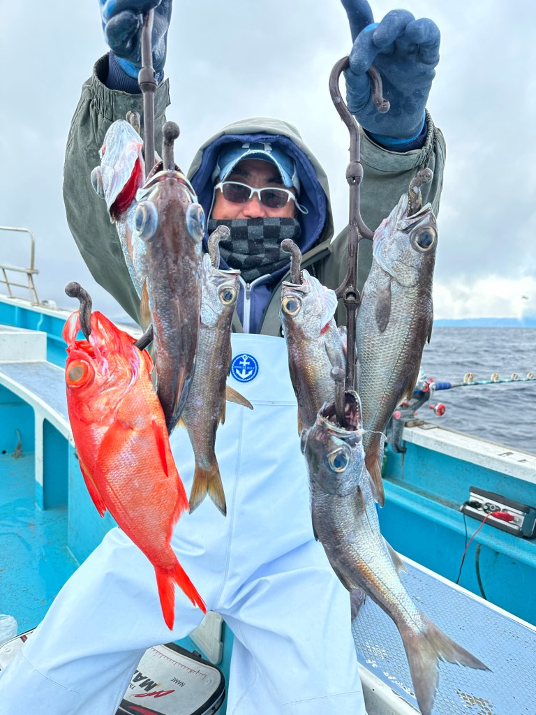 を中心に水深200~300m位の深さのライト深海乗合3名より出船です